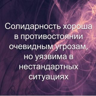Солидарность (от латин. solidus - прочный) у нас считается абсолютно позитивным началом, а одиночество и обособление – негативными. Приоритеты расставлены еще с эпохи княжеской междоусобицы и распрей. Солидарность принято считать гарантией безопасности и святым заветом предков. «Вместе – мы сила, а порознь – нас легко покорить. Отождествление солидарности с безопасностью создало запрет на указание на издержки солидарности. Например, патернализм, круговая порука (трайбализм, кумовство) – это тоже проявление солидарности, но с негативной стороны. Про патернализм и кумовство говорят достаточно много, но никогда как о негативной солидарности. Существует своего рода табу на очернение завета предков. Идеи пролетарского равенства и братства лишь слегка расширили трактовку солидарности. Однозначно негативно стали оценивается сословная, олигархическая и кастовая солидарности, не касаясь патернализма и протекционизма. Возникла химера позитивной солидарности «для нас» и негативной солидарности «у них». И вновь отождествление солидарности с безопасностью вернуло нас к «заветам предков». В последнее время, время эпидемии и пандемии, вопрос солидарности всплыл совершенно по-новому. Для безопасности нам рекомендована ограничение контактов и самоизоляция. Интенсивные контакты и братская, но недостаточно квалифицированная помощь может «выйти боком» и заразить какой-либо разновидностью C0VID. Впервые между солидарностью и безопасностью возник барьер. Имя этого барьера – уязвимость. Он стал не менее опасен, чем очевидные угрозы, про которые идет речь в «завете предков». Уязвимость поменяла всю концепцию безопасности для специалистов, но не представления обычных людей. Существует общая привычка демонстрирования внешних угроз и сокрытия своих уязвимостей. Солидарность дала трещину, но не открыла нам свои уязвимости. А они достаточно серьезны. Более того, на базе солидарности легко создавать новые уязвимости. Например, полностью игнорируется тот факт, что в эпоху продвинутых социальных технологий уязвимым может стать даже солидарный принцип «своих не бросаем». Ситуация может быть фабрикована таким образом, что станет коварной западней для простодушных людей. Давно известно, что в сплоченных коллективах намного тяжелее продвигаются инновации, конкуренцию и бизнес. Сплоченность комфортна, но для жизнеспособности она обязана допускать возможность периодического выхода из зоны комфорта и самокритику. И не стоит забывать, что солидарность меняет свое значение в зависимости от ситуации. Обсудить тему можно на страницах блога "Социальные эксперименты и аналитика" |
