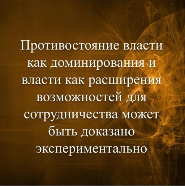Противостояние власти как доминирования над подчиненными и власти как расширения возможностей для сотрудничества - может быть доказано экспериментально |