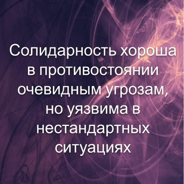 Солидарность – хорошо, обособленность – плохо! Всегда ли так? Давайте разберемся. Насколько справедлив завет предков о единстве как залоге безопасности в условиях пандемии. |